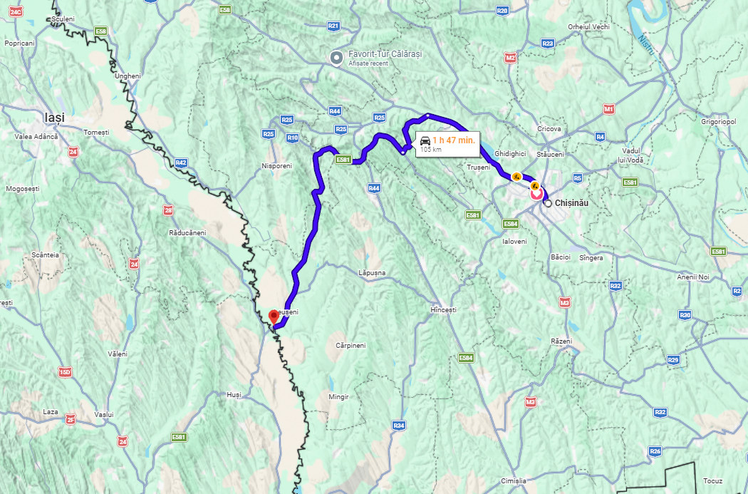 21:00 – 22:20 Chișinău – Vama Leușeni 105 km, 1 ora 20 minute